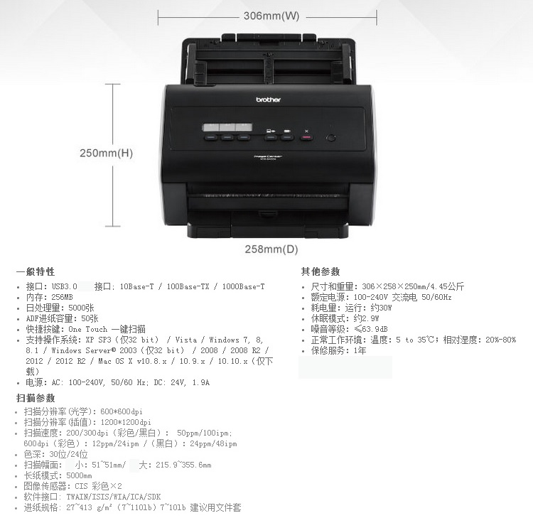 兄弟(brother) ADS-3000N 馈纸式网络扫描仪