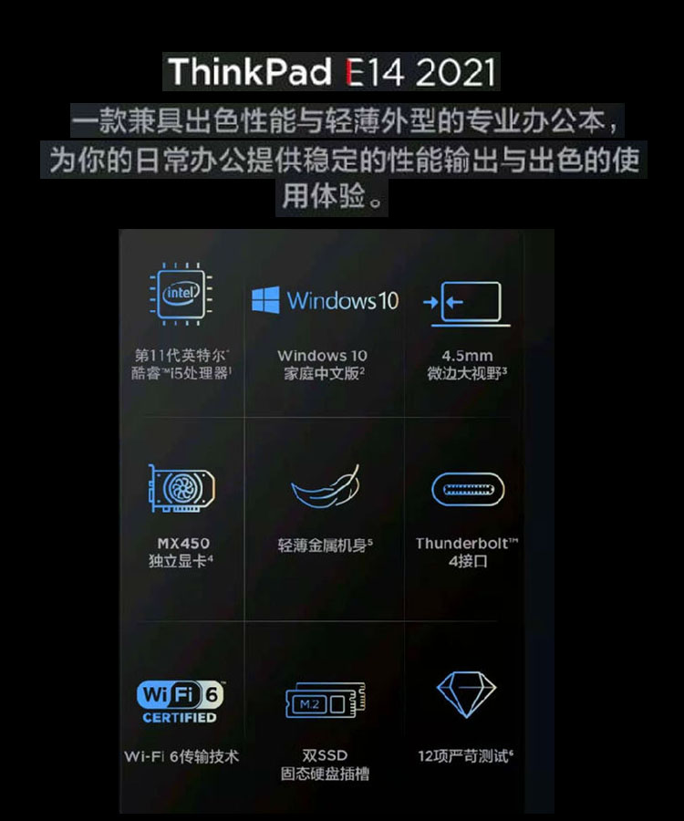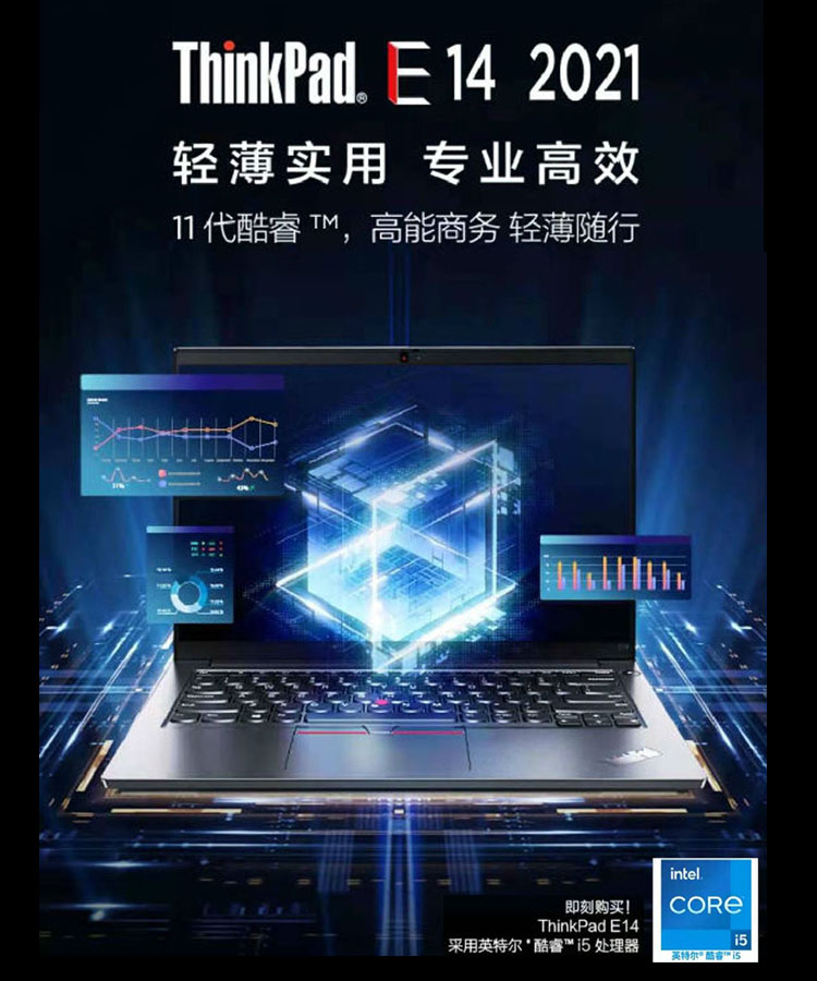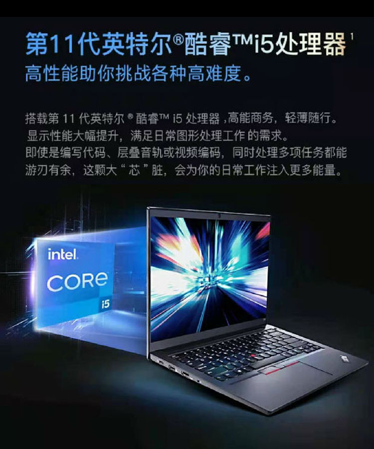 联想(Lenovo) ThinkPad E14 便携式计算机 2021款14.1英寸轻薄商务笔记本电脑 I5-1135G7/16G/512G固态/WIN10/FHD屏幕